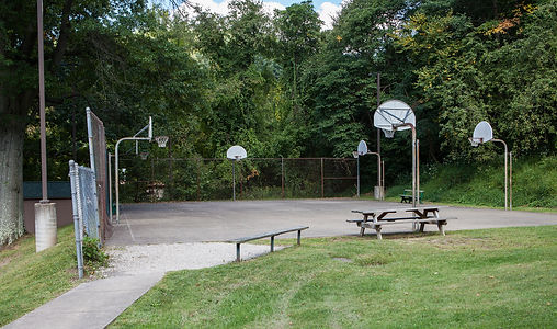 The basketball courts are located next to the Pavilion and are available for use during park hours!